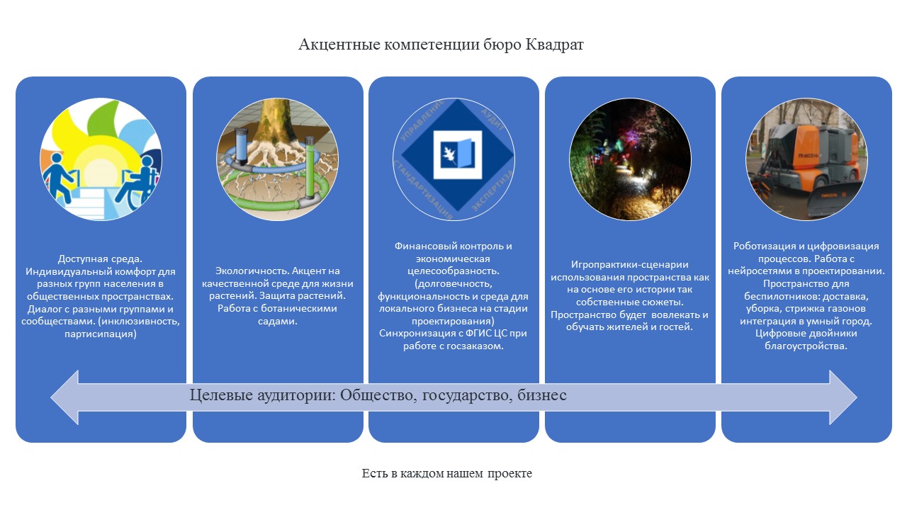 Д) Экологичность. Первое это акцент на выживании и забота о растениях с учетом их газоустойчивости и тд. Дале "зеленый след", это о количестве выбросов при закупке элементов благоустройства, об этом на бытовом уровне читает лекции Роман Саблин а на профессиональном для строительства рассказывает Гай Имз. Естественно это о системах городского полива в городе. Медицинский аспект, влияние благоустройства на здоровье человека, приоритет в подборе развивающего оборудования детских площадок, гипоаллергенных растений.